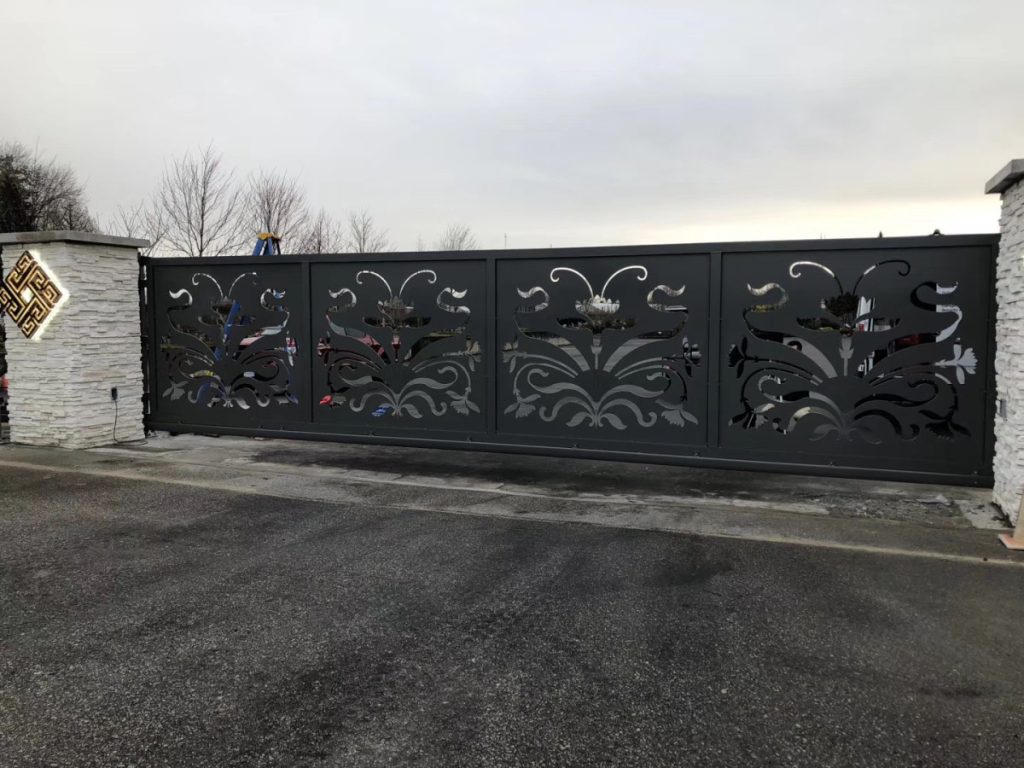 Cantilever gates are commonly used for wide entrances and areas where ground tracks are impractical. They can be customized in size, material, and finish to suit modern or industrial designs.